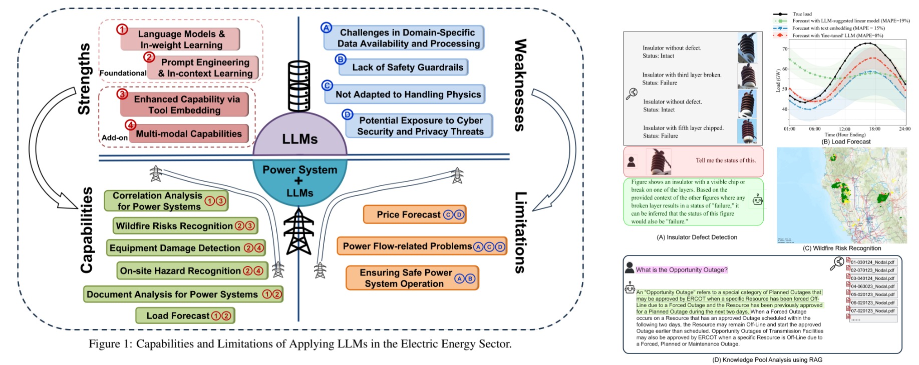 This paper investigates how large language models (LLMs) perform in electric-energy systems tasks—identifying both their promise and their limitations for this safety-critical domain.